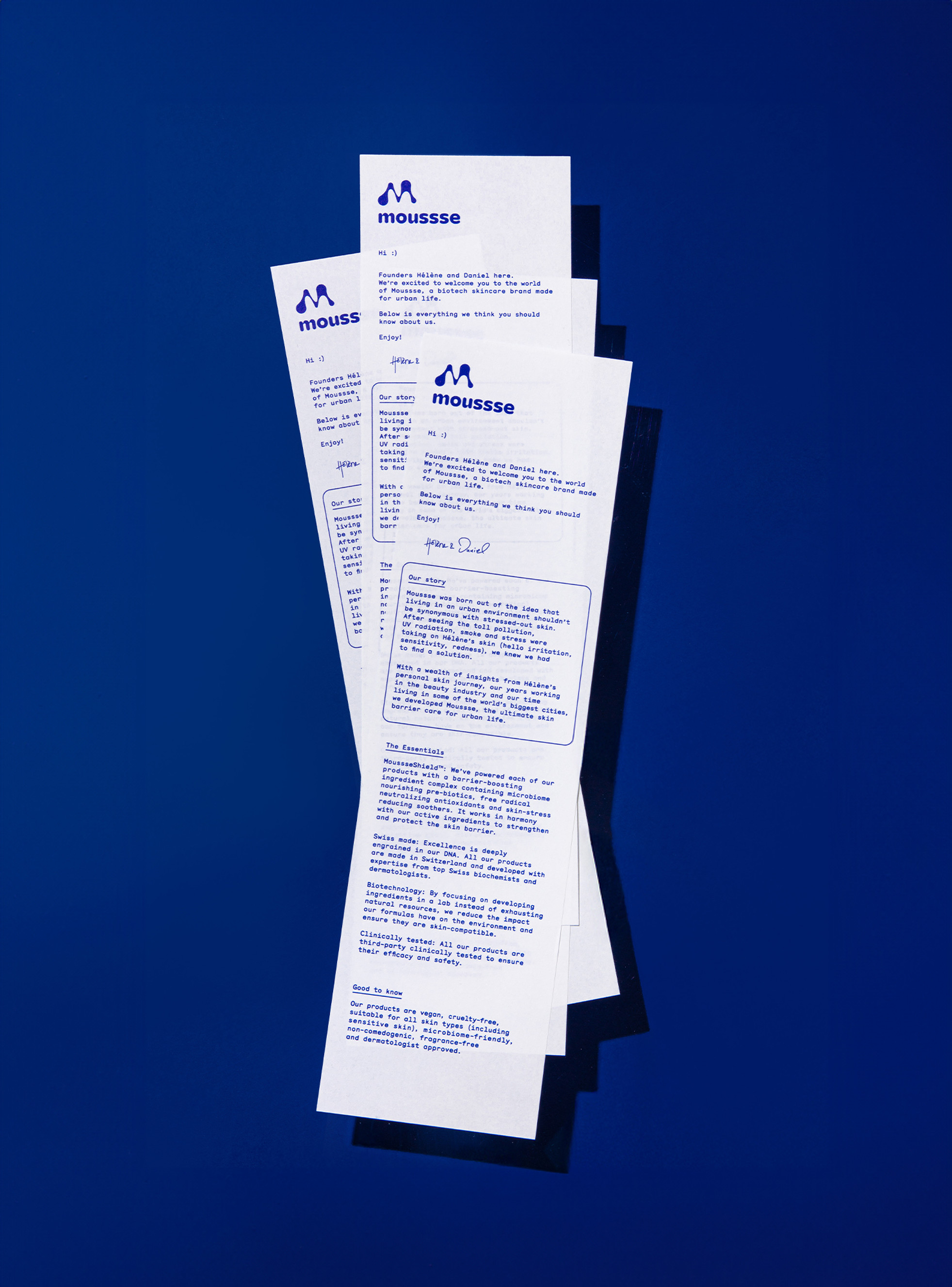 Beyond the core system, we created pictograms and delivered a minimal and evolving set of brand guidelines. We now accompany the founders as moussse experiences exponential growth.To deploy the brand for its commercial launch we also produced packshots, still life photography, and video content.