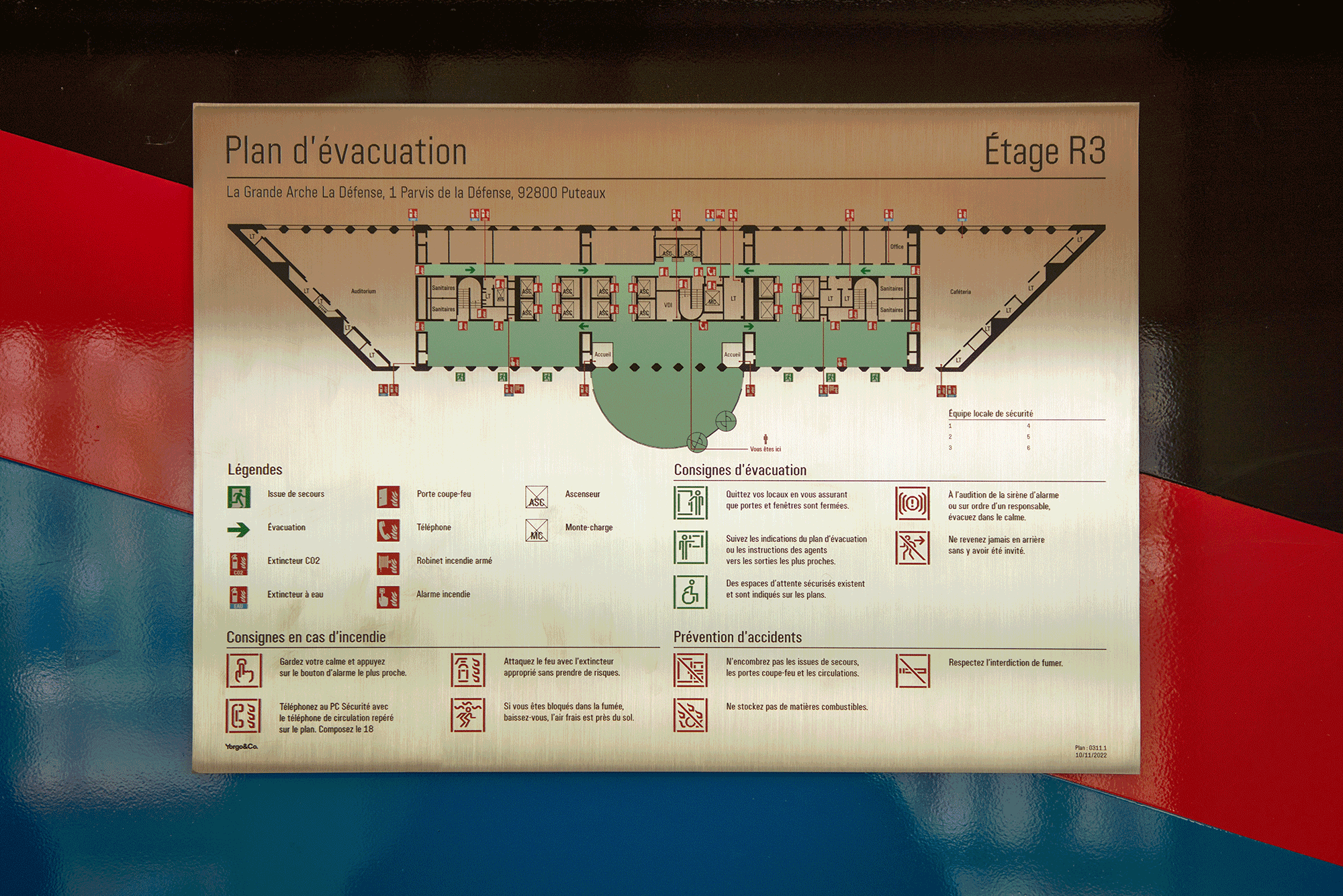 When the landmark building in the western Parisian skyline, La Grande Arche, chose the architect Franklin Azzi for a complete overhaul of its interior spaces, we were askedto design a new logo, and to implement a full signage system. We renamed the north wing of the building L'ARCHE, Yorgo drew a symbol evocative of the way the beveled surfaces catch the light, and we created a custom typeface, Hypercube, inspired by the core structure of the building with its mix of 45° and 90° angles. The full signage system includes 30 exclusive pictograms and 700 printed and cut-out signs applied on materials we selected, designed, and lit in collaboration with the Franklin Azzi architectural team.