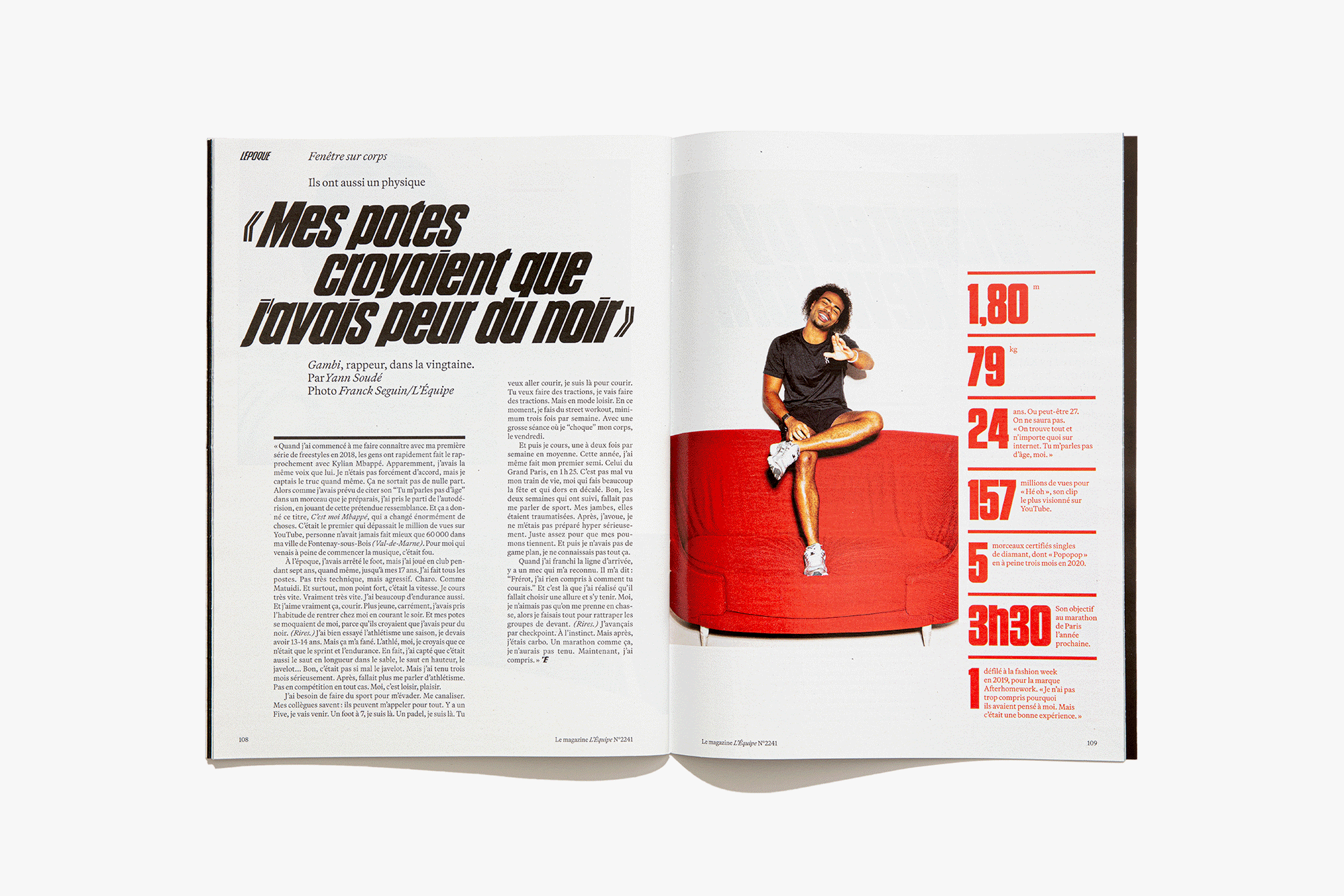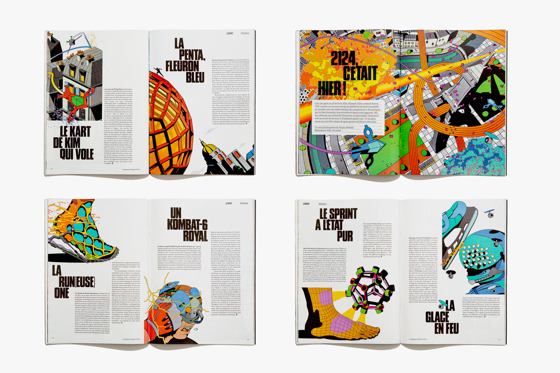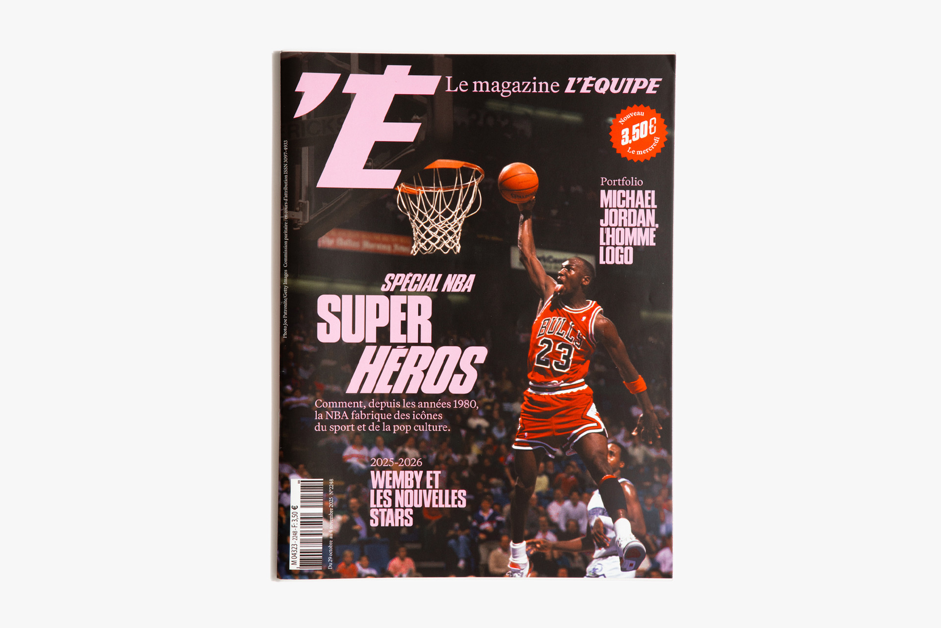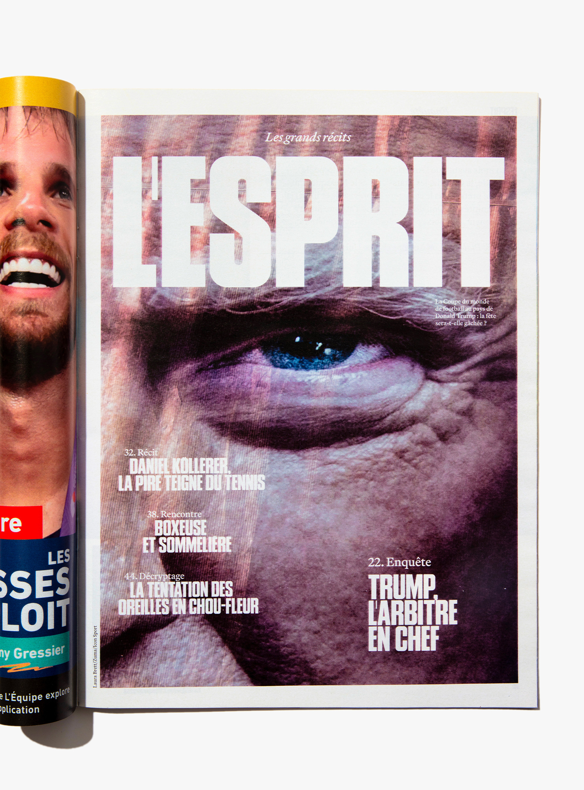 We reimagined L’Équipe Magazine, the weekly supplement of France’s leading sports newspaper, in close collaboration with the editorial team. The cover was redefined through a simple gesture: isolating the letter “É” from L’Équipe as the magazine’s logo, to singularize it and give more space to the visuals. Two complementary covers coexist: a headline-driven cover for the standalone Wednesday edition, and a more minimal Saturday cover built around a single, striking visual. Our work on the new formula started with a deep exploration of the archive, dating back to the 80s. We brought back some design elements from past issues—underlined standfirsts, paragraph-starting squares, thick lines—and combined them with a timeless layout.