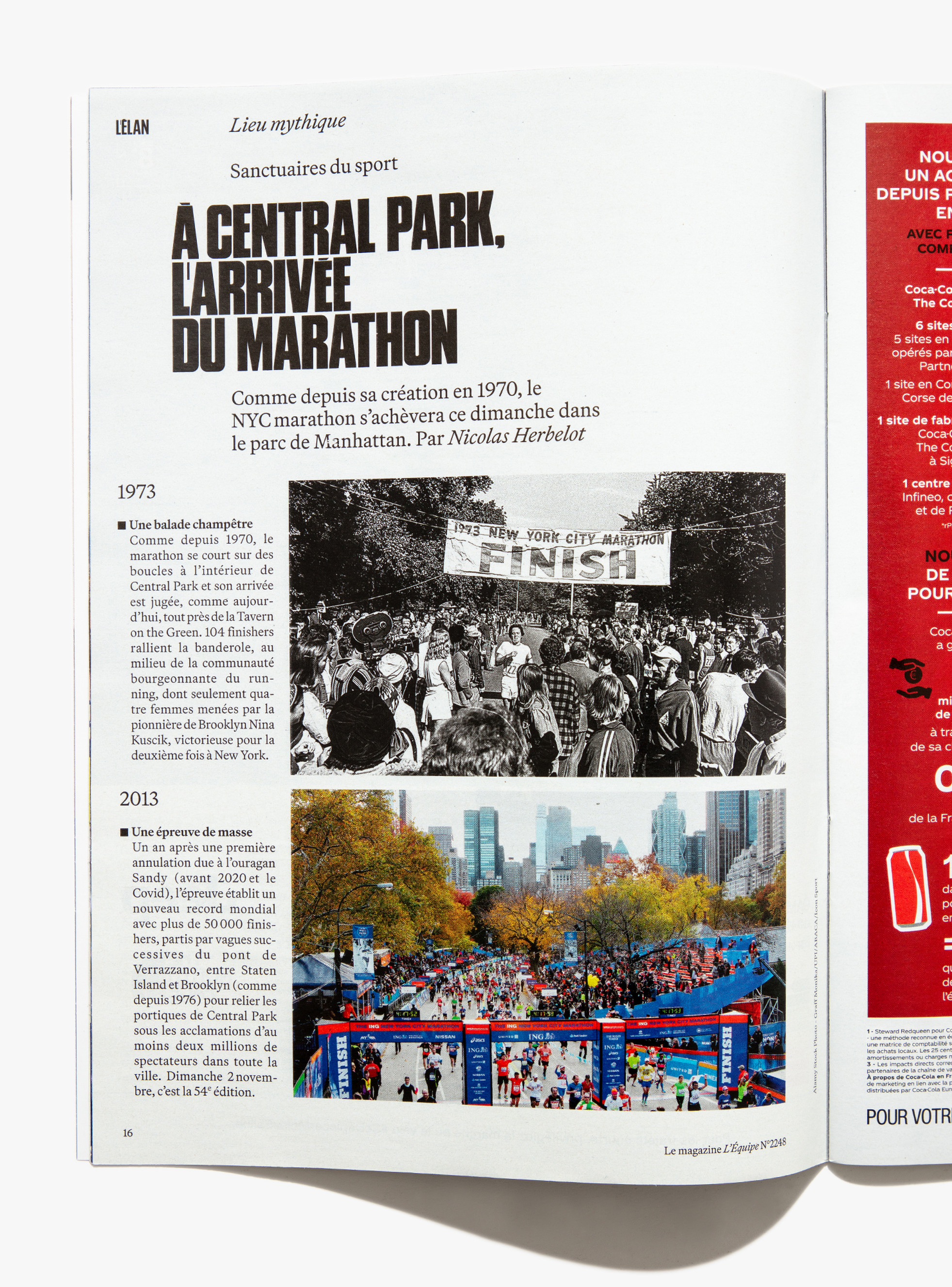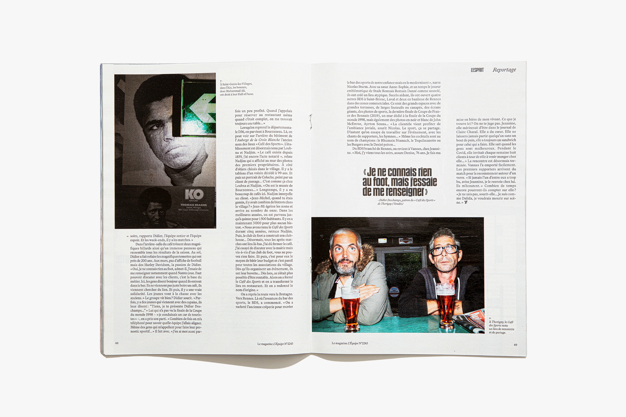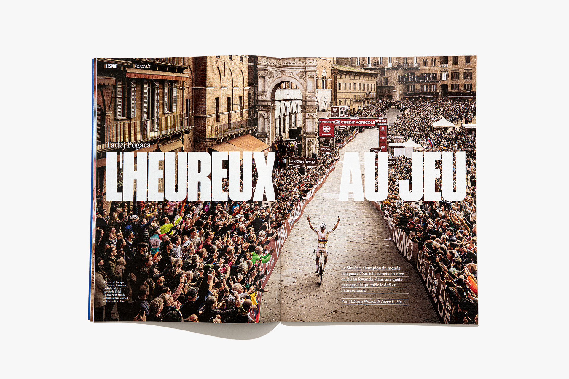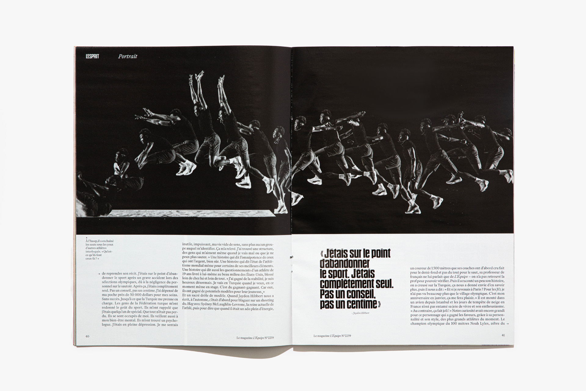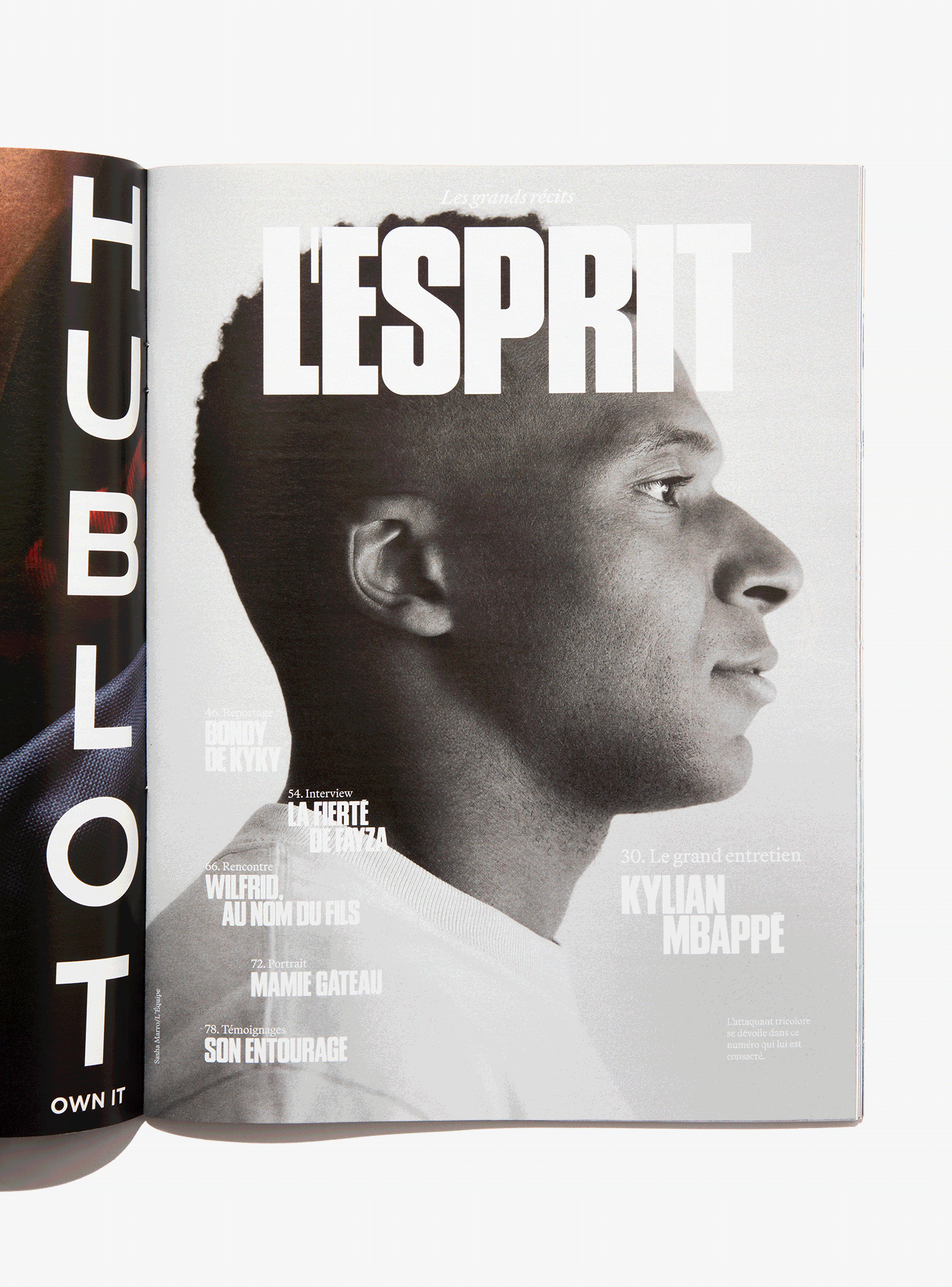 We reimagined L’Équipe Magazine, the weekly supplement of France’s leading sports newspaper, in close collaboration with the editorial team. The cover was redefined through a simple gesture: isolating the letter “É” from L’Équipe as the magazine’s logo, to singularize it and give more space to the visuals. Two complementary covers coexist: a headline-driven cover for the standalone Wednesday edition, and a more minimal Saturday cover built around a single, striking visual. Our work on the new formula started with a deep exploration of the archive, dating back to the 80s. We brought back some design elements from past issues—underlined standfirsts, paragraph-starting squares, thick lines—and combined them with a timeless layout.
